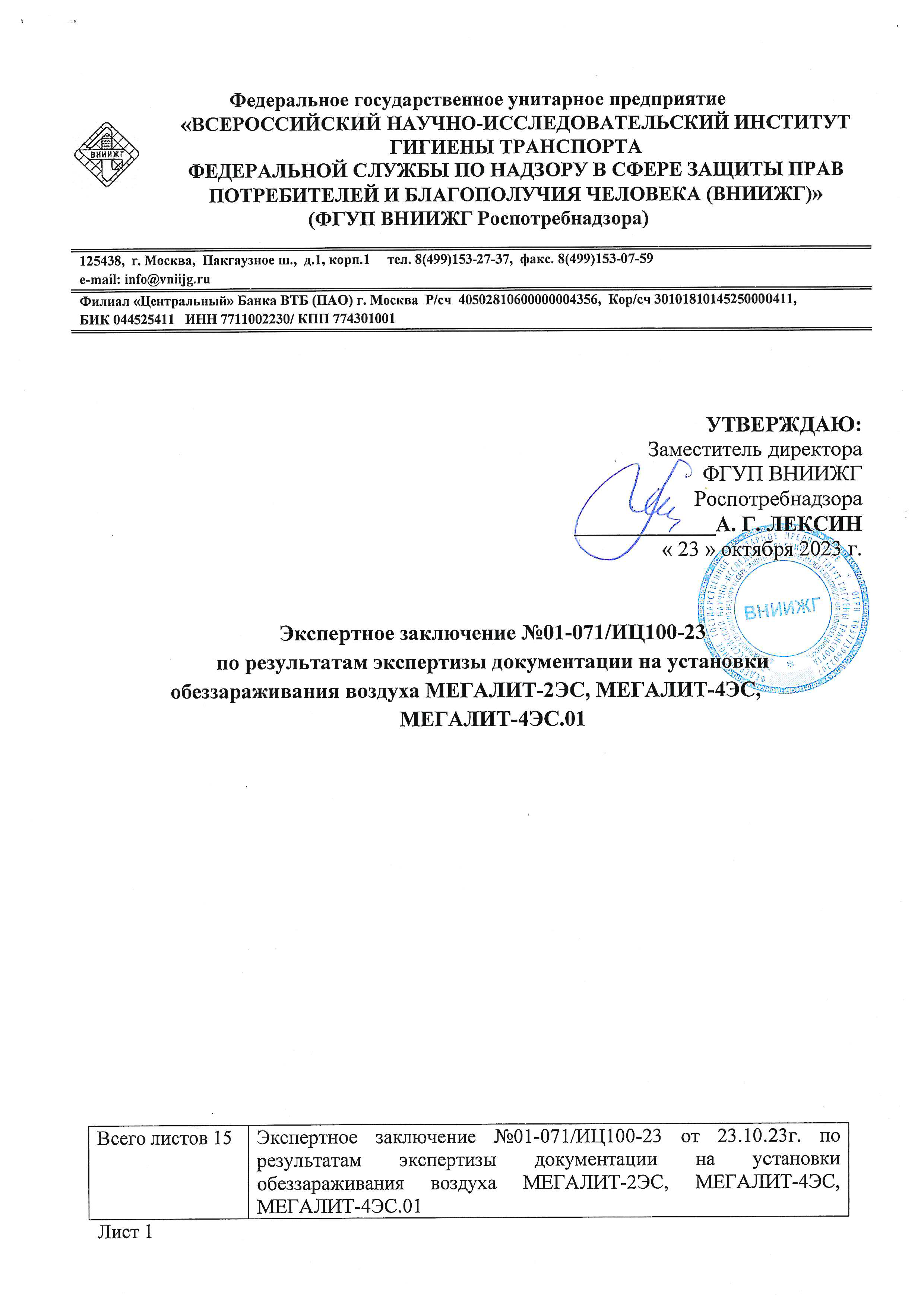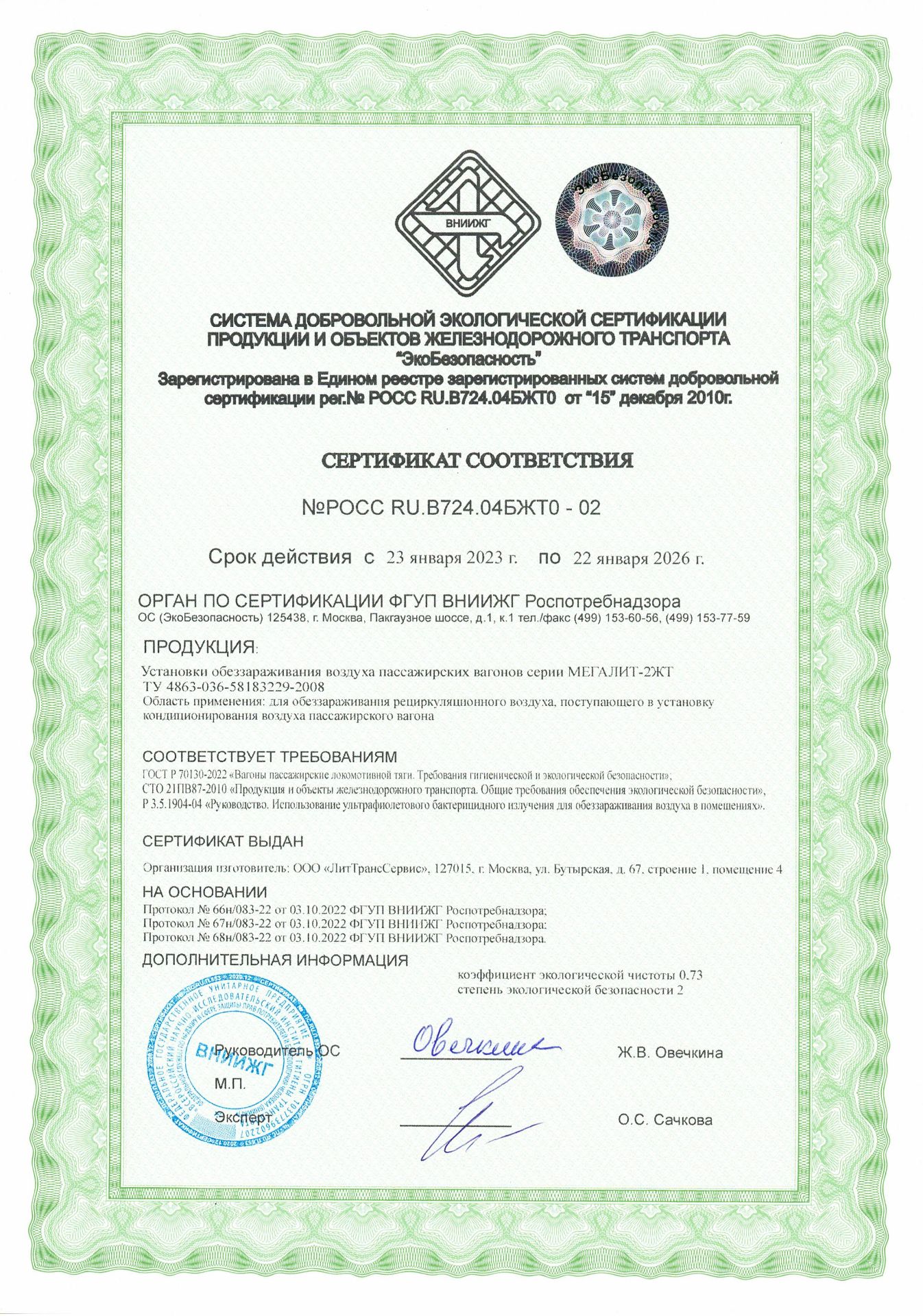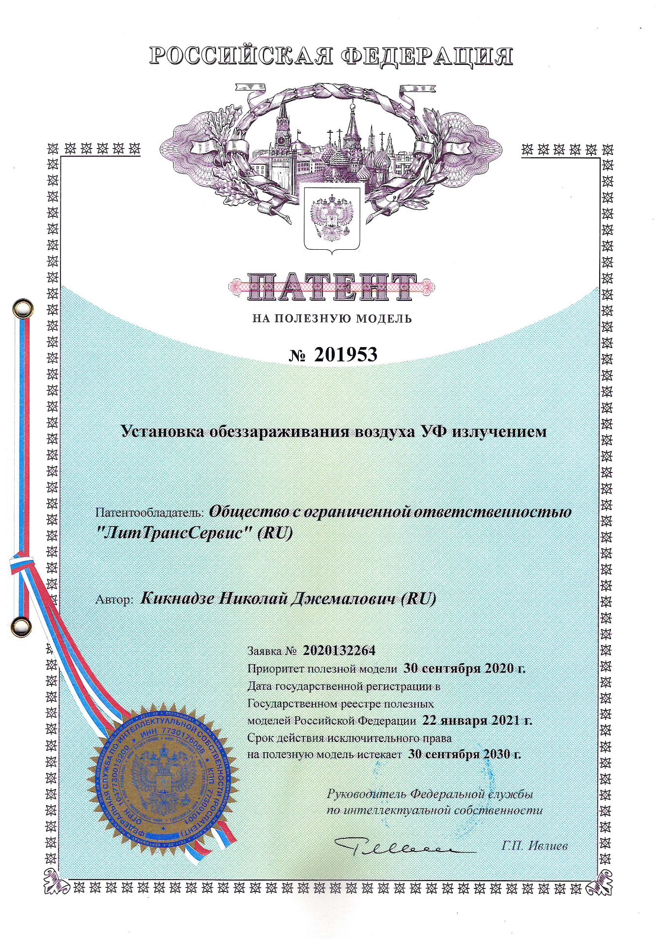 Установка, включая источник, является полностью Российской разработкой и полностью обеспечивает выполнение требований Санитарных правил, ТР ТС, ГОСТ, ГОСТ Р и др. нормативных документов.